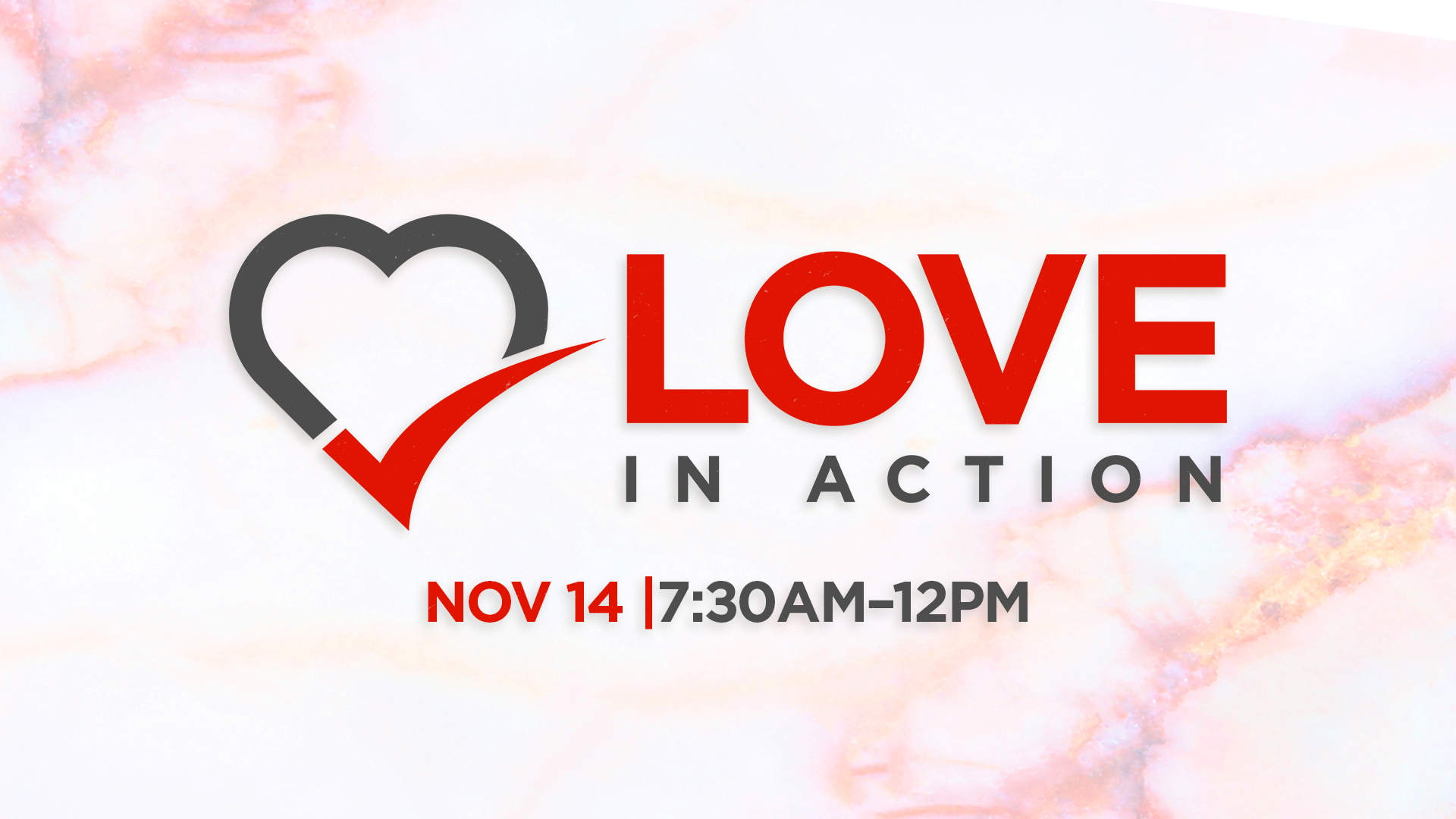 Love in Action is a city-wide serve day where we come together as the church to meet real needs and show the love of Jesus in practical ways. This is your opportunity to step outside the church walls, serve alongside others, and make a tangible impact throughout our city. Sign up to serve and be part of what God can do when His people put love into action.